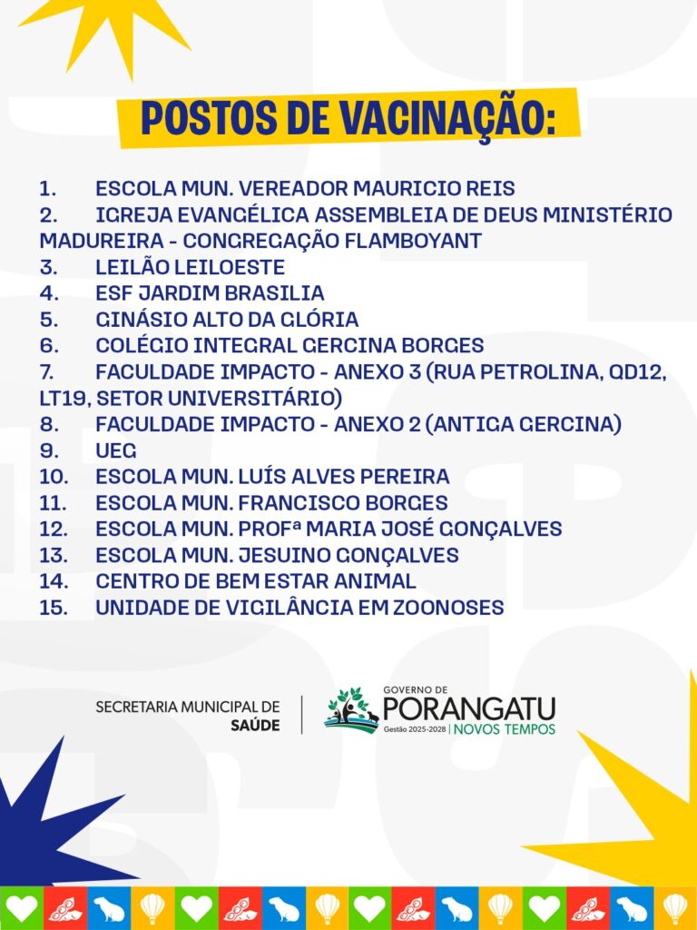Confira os locais de vacinação abaixo: