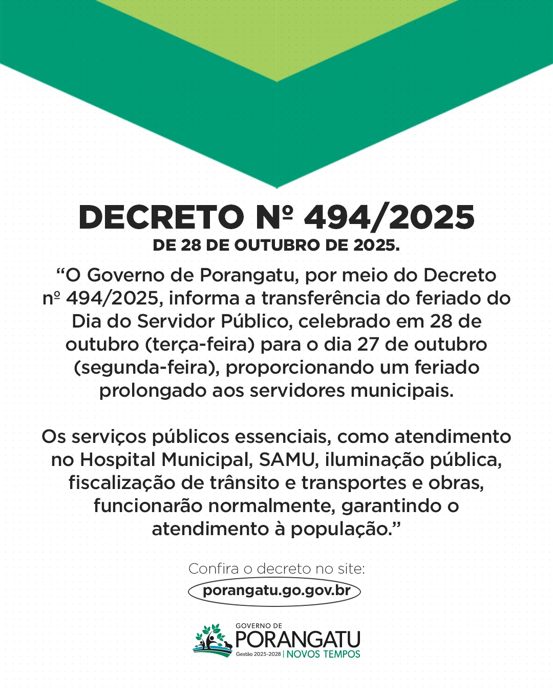GOVERNO DE PORANGATU DECRETA TRANSFERÊNCIA DO DIA...